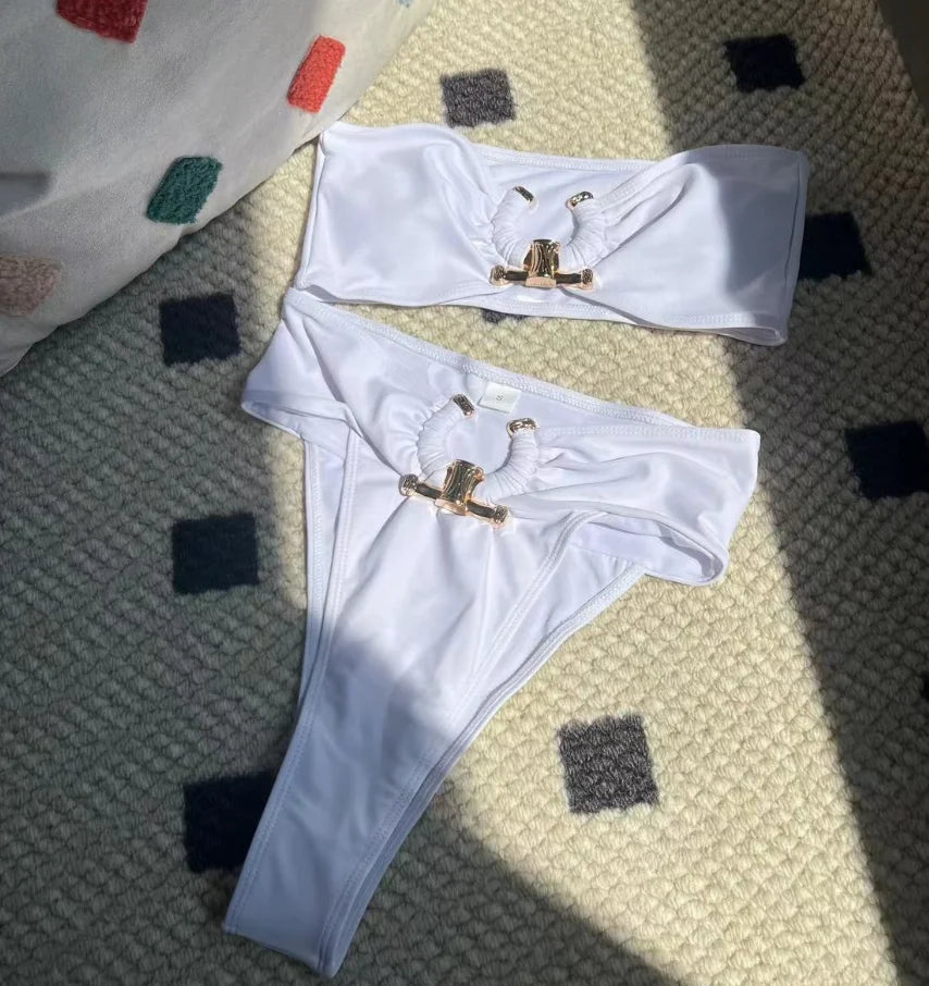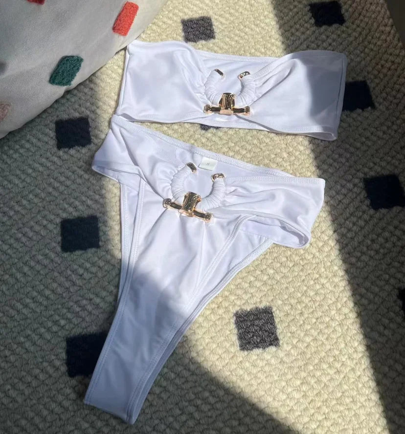 Eye-catching Design: This Brazilian Bikini Set features a unique bandage skirt design, making it an eye-catching choice for beachgoers.,Versatile Occasions: Perfect for various occasions, this bikini set is ideal for beach outings, parties, casual daily wear, or sunbathing.,Supportive Features: With chest pads and wire-free support, this bikini ensures both comfort and support for all-day wear.,Comfortable Fit: Crafted from high-quality spandex and polyester, this bikini offers a comfortable fit that stays true to size.