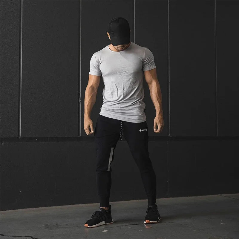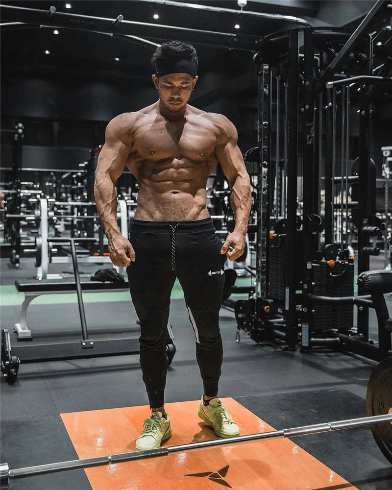 Men's Muscle Fitness Running Pants Outdoor Exercise Training Small Foot Workout Wolf King Design Casual Skinny Cotton Trousers