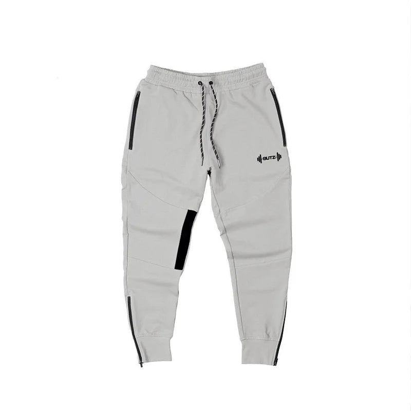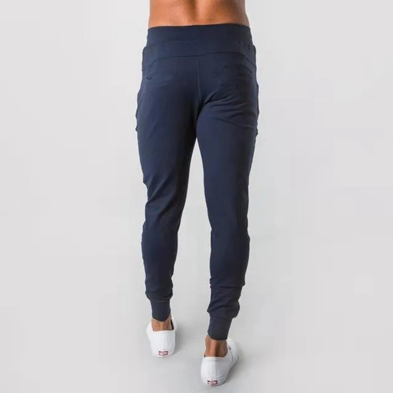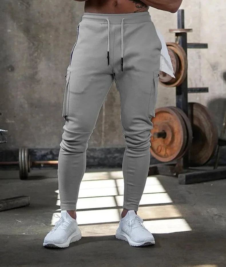 Men's Autumn Solid Color Sports Pants Stretch Slim Fit Cotton Zipper Pocket Drawstring Casual Running Fashion Trousers