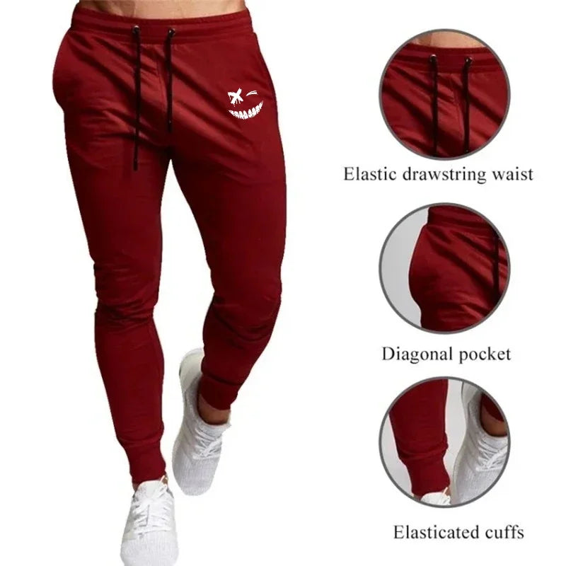 Men's Smiling Face Printed Sports Pants Casual Breathable Training Fitness Jogging Thin Eye-Catching Anime Sportswear