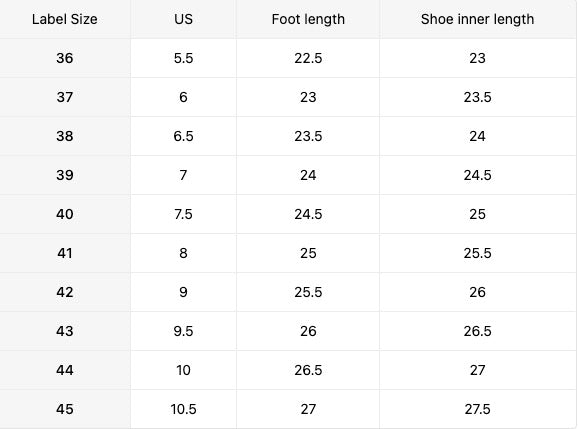 Sizes: 37, 38, 39, 40, 41, 42, 43, 44, 45, 46