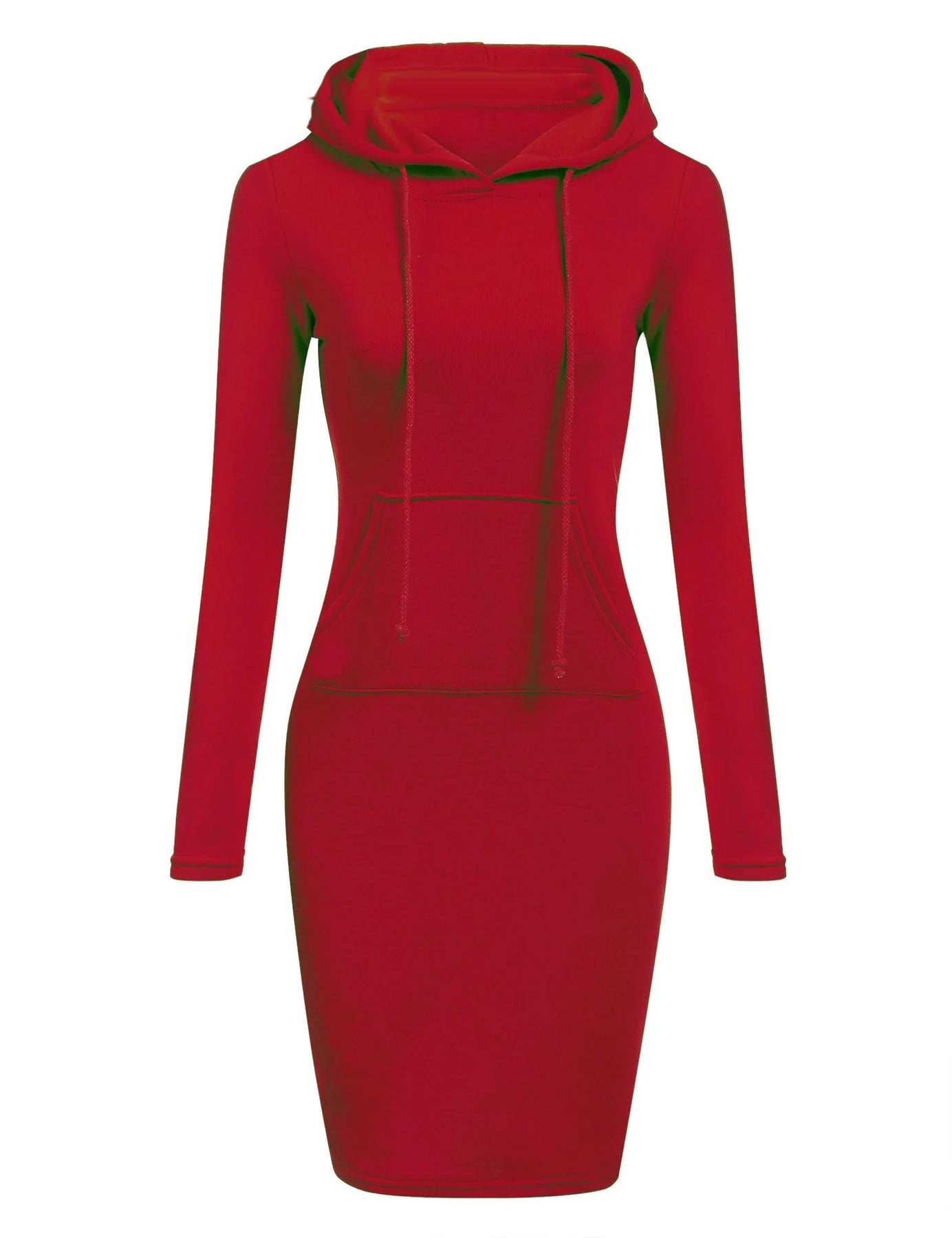 Women's Hooded Dress Casual Polyester Sweatshirt Kneelength Hoodie with Pockets Regular Fit Autumn Wear for Ladies