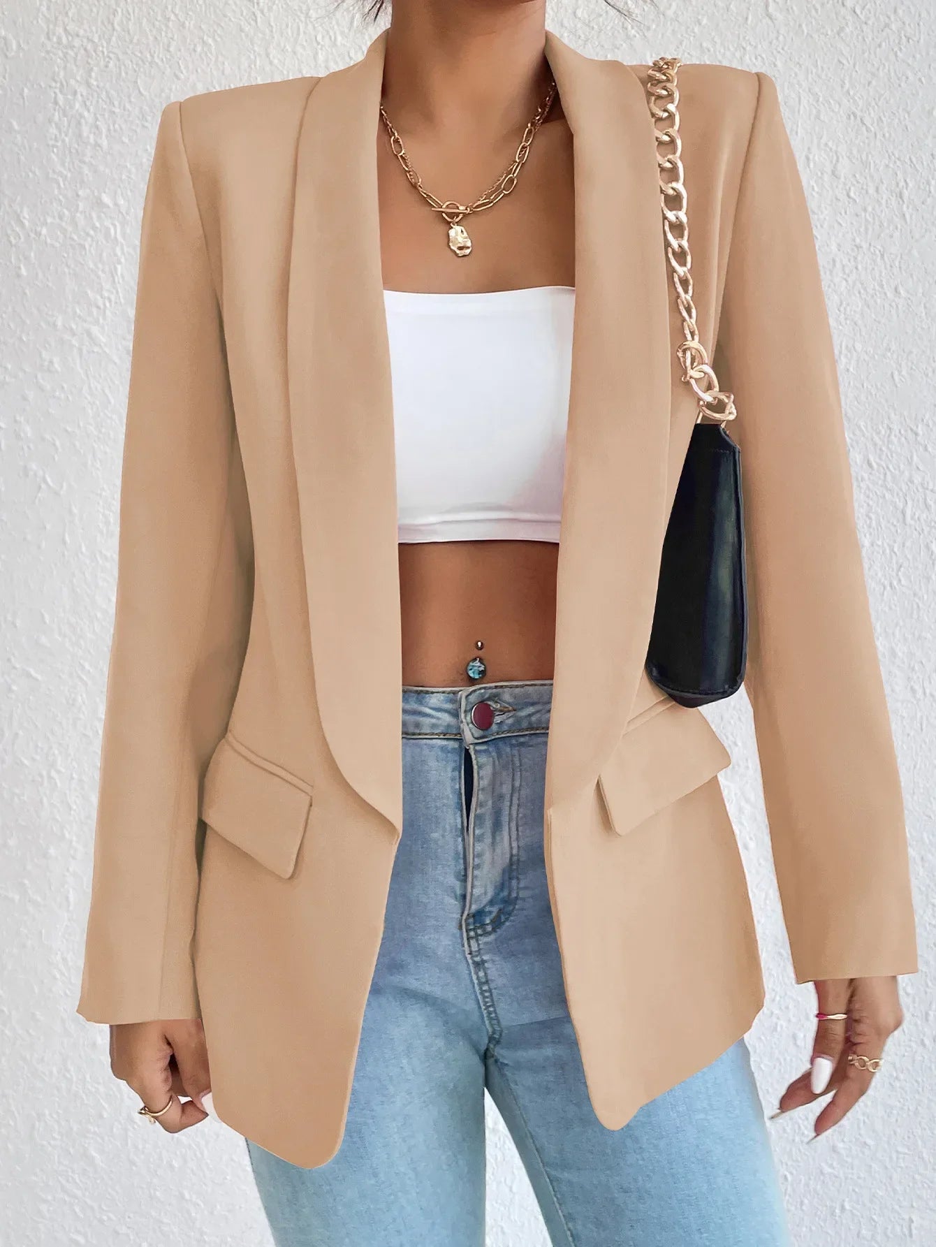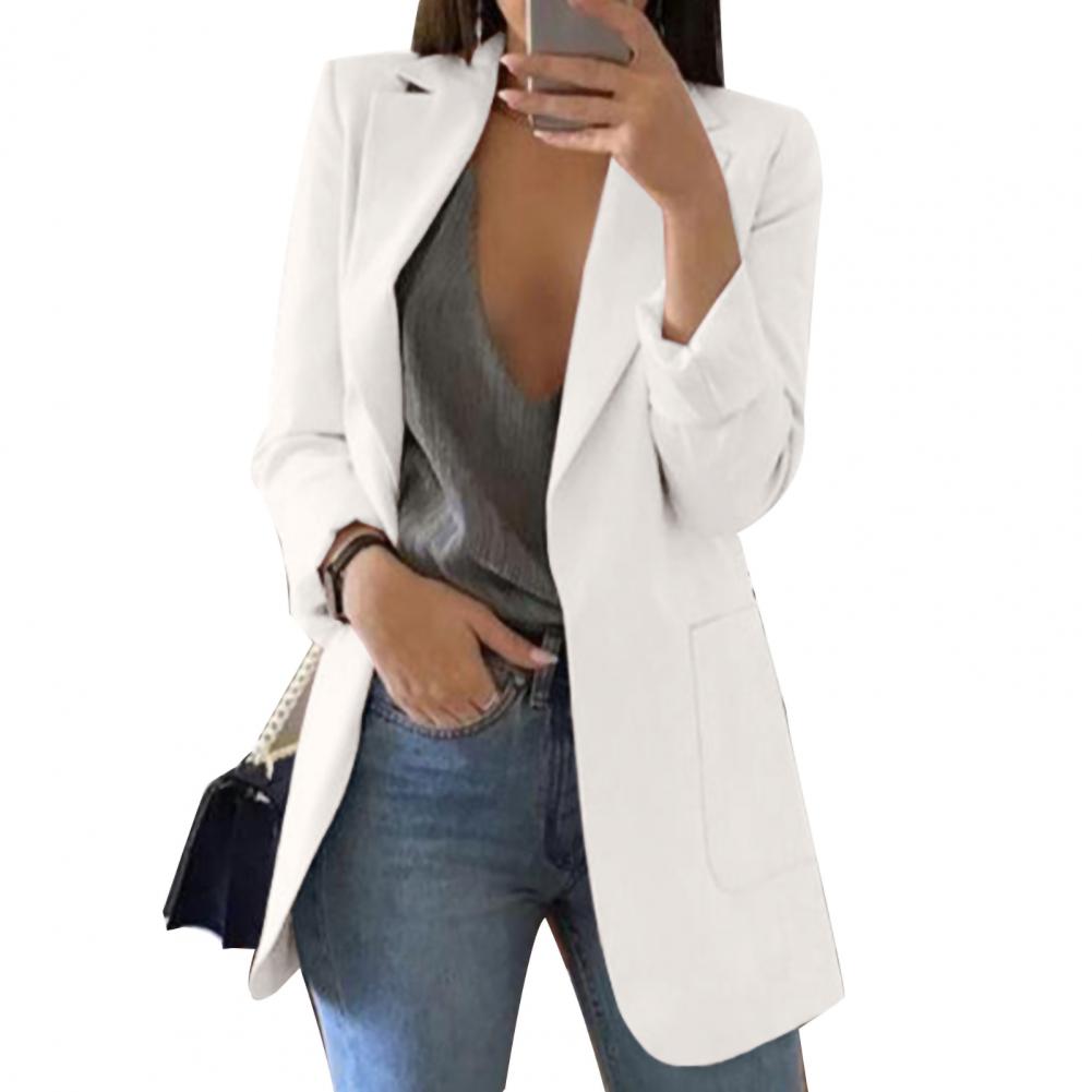 Spring Women's Solid Polyester Cotton Blazer Long Sleeve Slim Fit Office Lady Jacket with Pockets Fashionable Outerwear