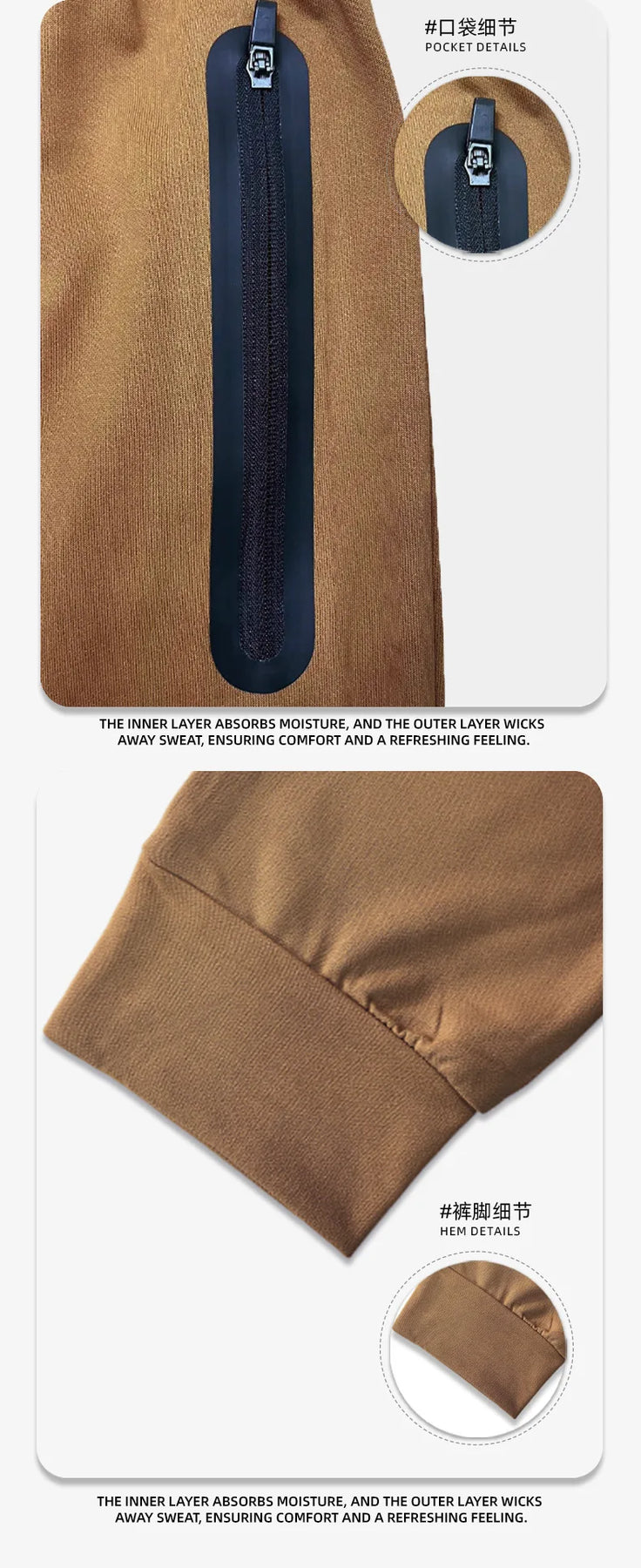 Men's Casual Sport Pants Autumn Winter Fashion Zipper Pocket Running Muscle Wear Ankle-Length Polyester Knit Regular Fit